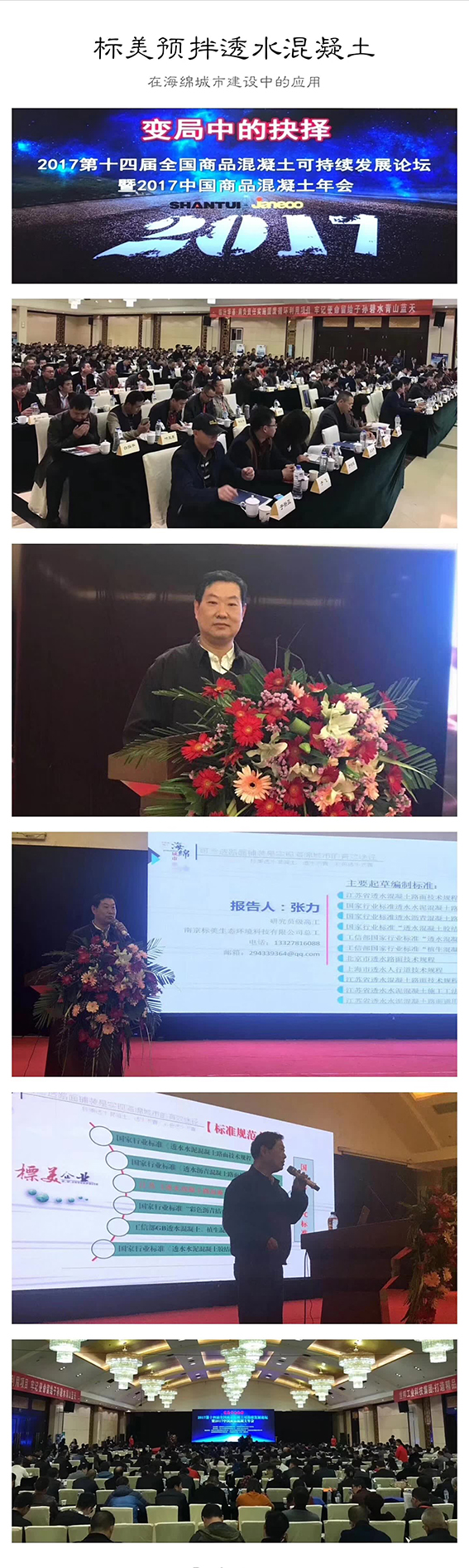 【變局中的抉擇-混凝土行業的轉型升級之道!】2017第14屆全國商品混凝土可持續發展論壇暨2017中國商品混凝土年會11月5--6號在山西臨汾召開。標美應邀作“預拌透水混凝土在海綿城市建設中的應用”專家主題報告,破解了困擾眾多商品混凝土攪拌站預拌透水混凝土在海綿城市建設中應用的難題,反響熱烈。